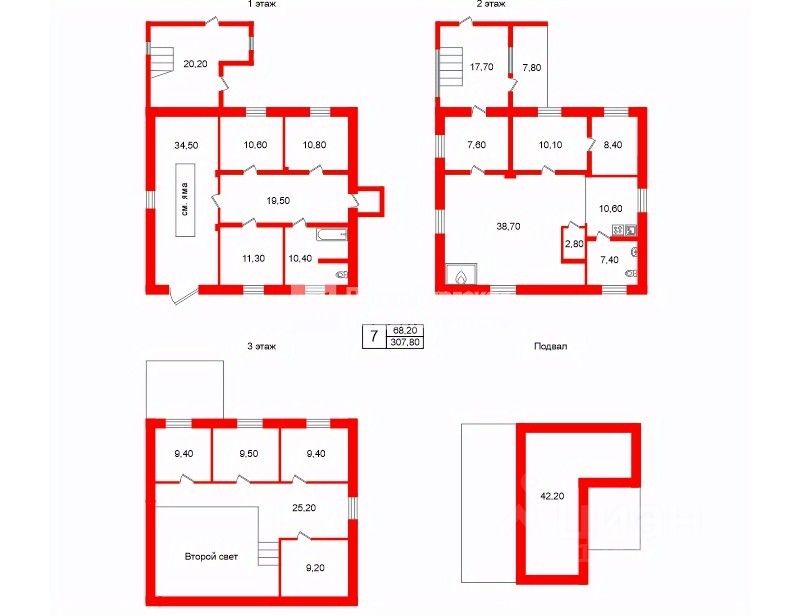 Жилой дом общей площадью 307,8м2. Земельный участок площадью 3138 кв.м. Скважина, ЛОС, дом газифицирован, электрифицирован.