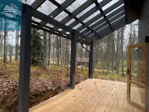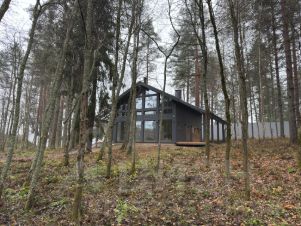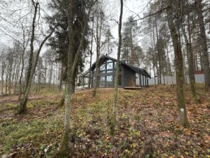 - просторная кухня-гостинная с панорамным остеклением с видом на природу.