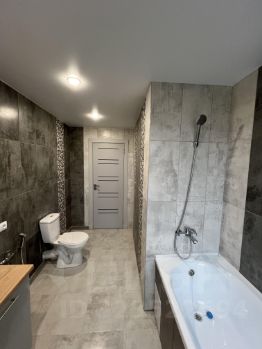 Два санузла в кафеле, один из них с ванной.