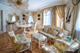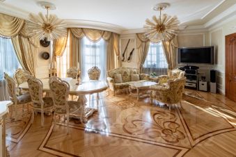 В доме: 4 спальни, кабинет, музыкальная зона, кухня-столовая, гардеробные и ванные комнаты, а также просторная гостиная. Из большинства комнат имеются выходы на открытые летние террасы или балконы.