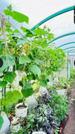 На участке: плодовые деревья и кустарники (крупная, сладкая малина)сортовая клубника и смородина. Большая теплица. Добротный сарай-птичник на ленточном фундаменте, крыша, металлочерепица, клетки под кроликов, куры