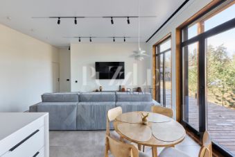 Просторная кухня-гостиная 40 м² с панорамным остеклением и выходом на террасу.