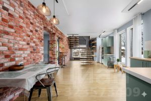Стены - декоративная штукатурка, декоративный кирпич ручной работы.