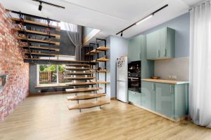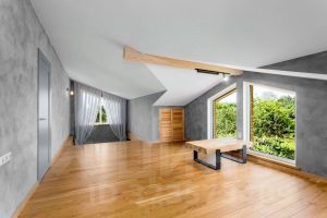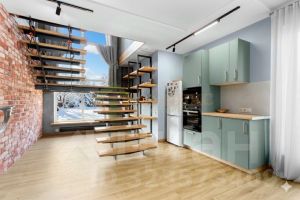 Пол - кварц винил (на первом этаже), инженерная доска дуб (второй этаж).