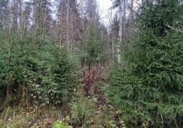 К участку примыкает лес, даже небольшая часть массива с красивыми ёлками относится к продаваемому участку.