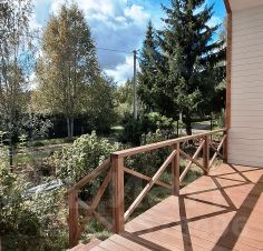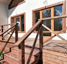 Новый красивый дом, построенный в стиле Барнхаус, расположен в 15 км от Санкт-Петербурга по Новоприозерскому шоссе, на участке 6 соток.
