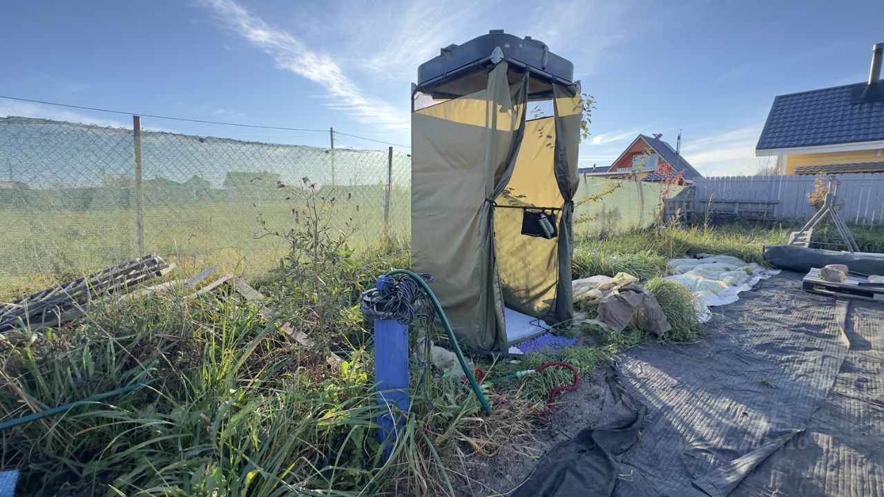 Ровный участок светлый с хорошей землёй. На участке есть большая теплица 2х3 метра. Высажены плодовые деревья и кустарники. Своя скажина 20метров. Установлен биотуалет с баком на 25л. Летний душ.