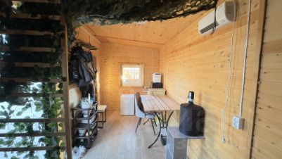 В 2023году построен на сваях небольшой дом на 2 комнаты, 12 и 7 метров квадратных. Дом отапливаемый электро обогревателями в обеих комнатах. Также в доме пленочный инфракрасный пол. На полу водостойкий ламинат. Дом обшит покрытием технониколь.