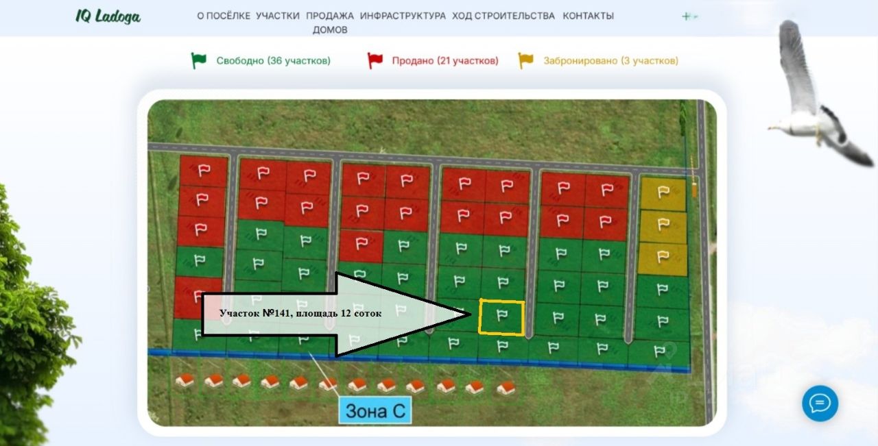 ПАРАМЕТРЫ ЗЕМЕЛЬНОГО УЧАСТКА: Участок правильной формы ровный и сухой. КАТЕГОРИЯ ЗЕМЕЛЬ: Земли населенных пунктов. Площадь участка 12 соток. Кадастровый номер: 47:26:0108001:13238. Местоположение: Ленинградская область, Тосненский муниципальный район, Федоровское городское поселение, деревня Ладога, 2-й гранитный переулок, земельный участок 10. На генплане коттеджного поселка - это зона С, условный номер 141. Участки в первой очереди строительства проданы, во второй - осталось несколько участков с видом на реку Ижора. В поселках идет активная застройка!