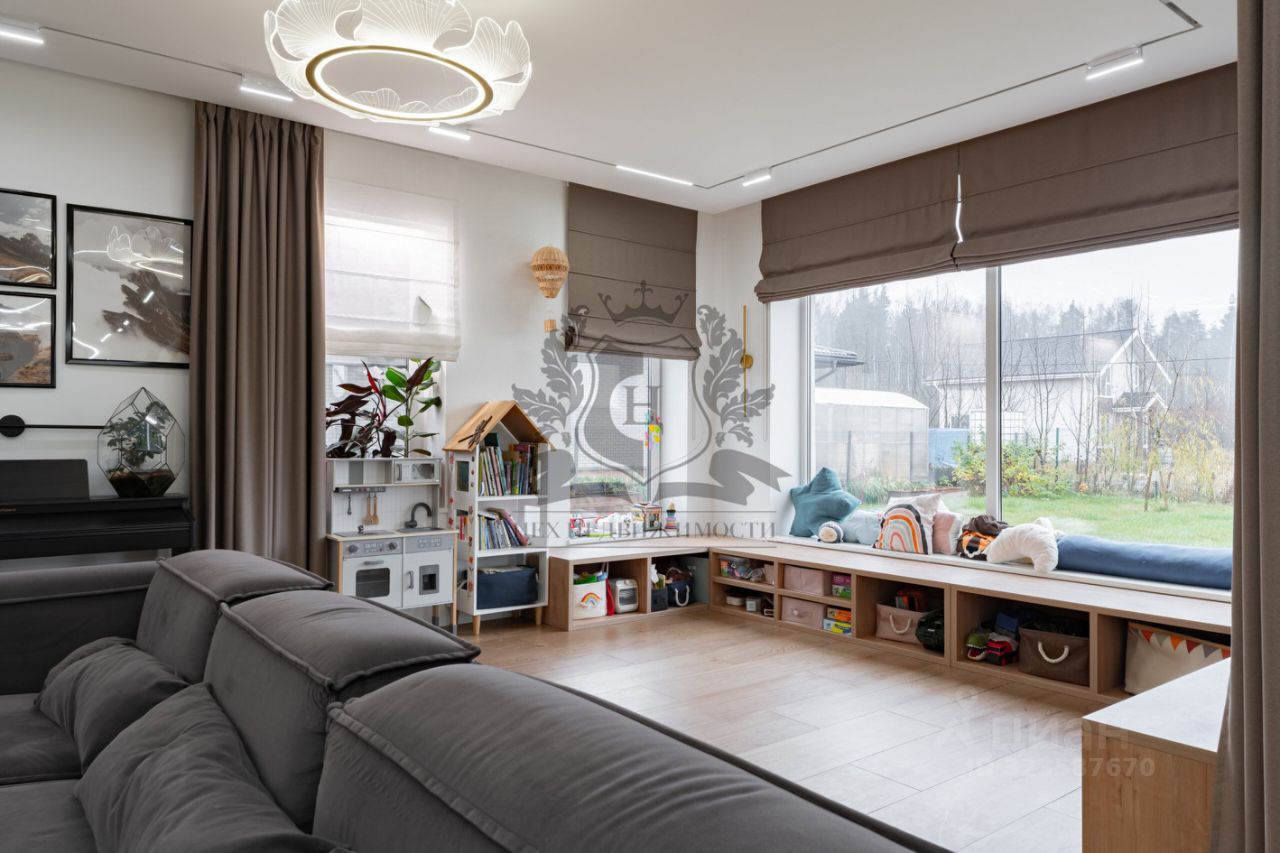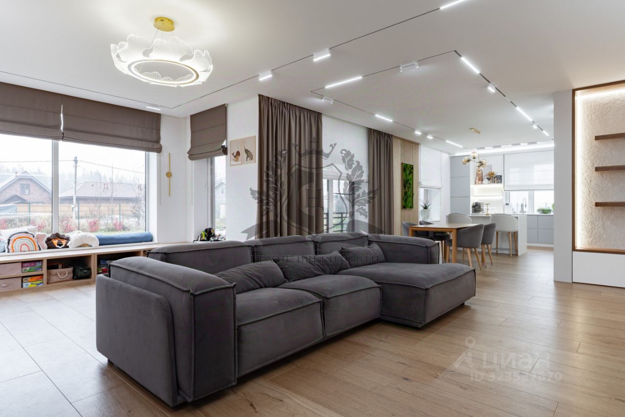 Всего в доме: большая кухня - гостиная, 2 спальни, 2 отдельные гардеробные, 4 санузла с душевой, две детские комнаты, кабинет.