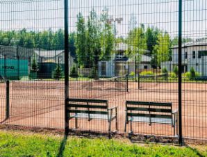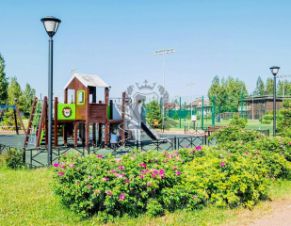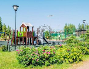 На территории — парковая зона площадью 2 Га: теннисные корты, футбольное поле, детские площадки, уютный пруд с рыбками и аллеи для прогулок.