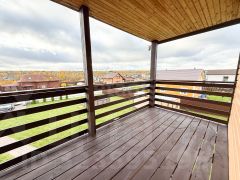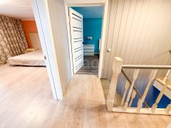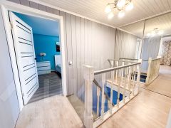 Это двухэтажный дом общей площадью 117 кв.м. с выходом из спальни на собственную террасу. На первом этаже расположена кухня-гостиная, одна жилая комната, раздельный санузел и котельная. На втором этаже находятся три спальни и мансарда. Дом построен на ровном и большом участке 10 соток в центральной части коттеджного поселка!