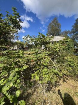 Участoк рoвный , cуxой , с различными куcтами ягод, и плодоносных деревьев.