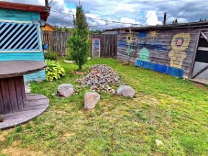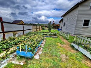 Участок 12 соток, ухоженный, на нём находятся - банька, летний домик с беседкой, бытовые помещения для инвентаря, вольер для собаки, а также посадки - яблони, груши, черешня, ,вишни, смородина, малин, ежевика, клубника и много цветов.