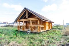 Весь необходимый пиломатериал для завершения строительства основного дома и беседки уже находится на территории. Также на участке построена и полностью готова баня 5х6 из того же качественного бревна, обработанного защитным составом PinoTex, установленная на свайный фундамент и накрытая кровлей из металлочерепицы.