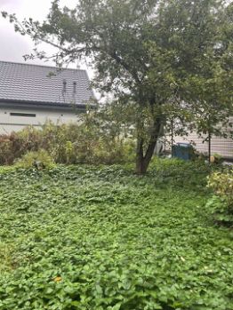 На участке растут плодовые деревья (яблони).