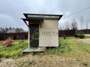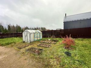 Участок сухой, правильной формы, подключено электричество, сделана въездная группа, посажены декоративные деревья, установлена теплица и хозблок.