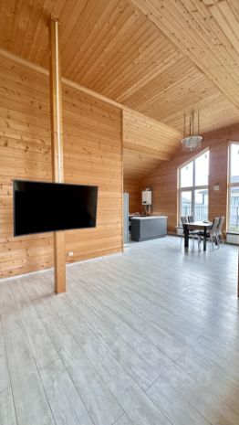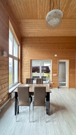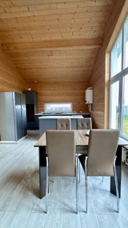 Современная планировка: кухня-гостиная, терраса, две смежные комнаты, сауна, совмещенный санузел, прихожая, котельная с отдельным входом. Встроенная кухня с островом, установлена бытовая техника (холодильник, посудомоечная машина, стиральная машина, газовая варочная панель). Сауна полностью укомплектована. Большие окна, высокие потолки и другие преимущества дома.