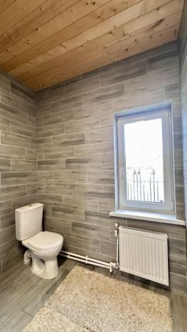 Крыша двухскатная. Кровля - металлическая черепица. Установлена водосточная система. Отопление - магистральный газ, итальянский котел. Электричество. Канализация биоочистка. Водоснабжение собственная скважина.