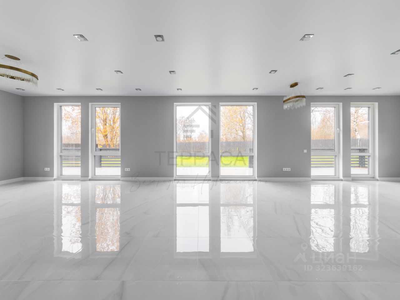 Просторная зона кухни-столовой и гостиной с панорамными окнами и высоким потолком, 4 спальни, 3 санузла, прихожая, техническое помещение.
