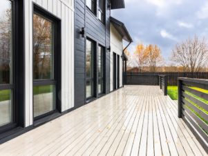 Отделка дома выполнена из фиброцементных панелей Cedral ( Бельгия).
