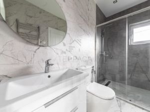 Полностью укомплектованные качественной сантехникой санузлы с отделкой из керамогранита. На полу в зоне прихожей-кухни-гостиной - итальянский керамогранит, в комнатах немецкий ламинат. Дизайнерские дорогие двери, которые еще больше подчеркивают объем. Во всех помещениях современные светодиодные светильники.