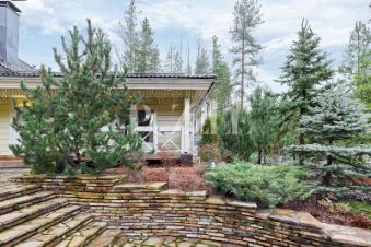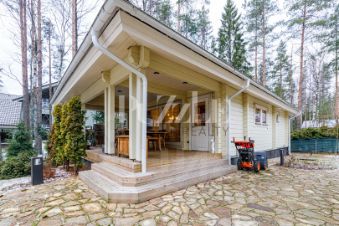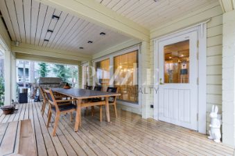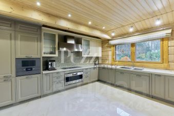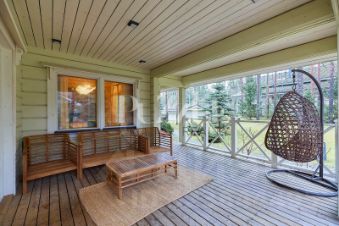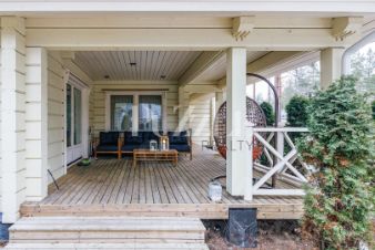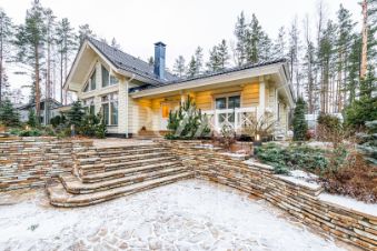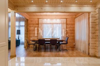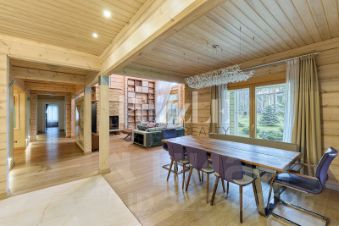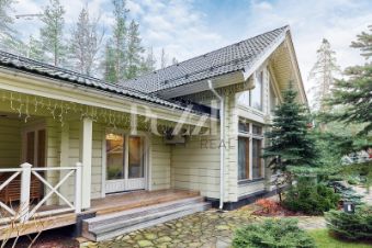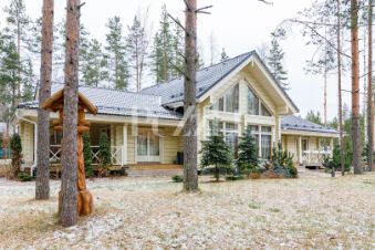Загородная резиденция общей площадью 439 квадратных метров проектировалась с особым вниманием к деталям , все строения выполнены из премиальных материалов. Клееный брус с мезонином и деревянные перекрытия создают теплую и комфортную атмосферу. Просторные помещения с панорамными окнами и высокими потолками наполняют дом светом и воздухом, а дубовый паркет на полах, итальянская штукатурка на стенах и дизайнерские светильники добавляют изысканности. Кухня, оборудованная техникой Gaggenau и холодильниками Liebherr, станет настоящим раем для кулинаров и любителей готовить.