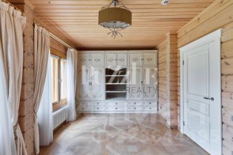 Второй этаж предлагает детскую спальню, удобный кабинет и еще один санузел. Интерьеры дома выполнены из высококачественных материалов: дубовый паркет, отделка из итальянских тканей, кондиционеры и теплые полы создают атмосферу настоящего домашнего уюта.