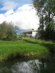 Коттедж находится на краю городской застройки. Имеется удобный подъезд, вид на речку, рядом лес. Есть возможности для подключения газа, центрального отопления, горячего и холодного водоснабжения