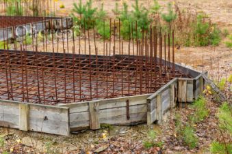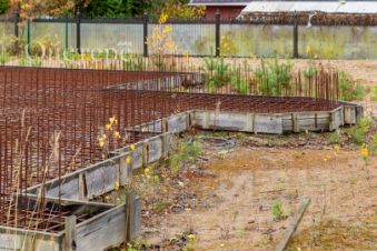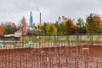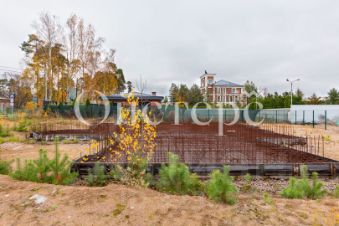 Участок ровный, полтора метра грунта вывезено и заменено на песок, вся площадь утрамбована. Выполнена подготовка грунта под бетонирование, установлены арматура и опалубка.