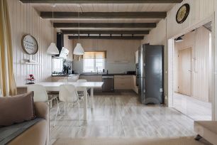 Дом, в который влюбляешься с первого взгляда Построен в 2017 году по финской технологии: тёплый деревянный каркас, минеральная вата, защита от ветра и влаги. Внутри — натуральная вагонка, наполняющая воздух ароматом дерева, снаружи — имитация бруса, окрашенная премиальной краской Tikkurila, которая надёжно сохраняет цвет и фактуру.