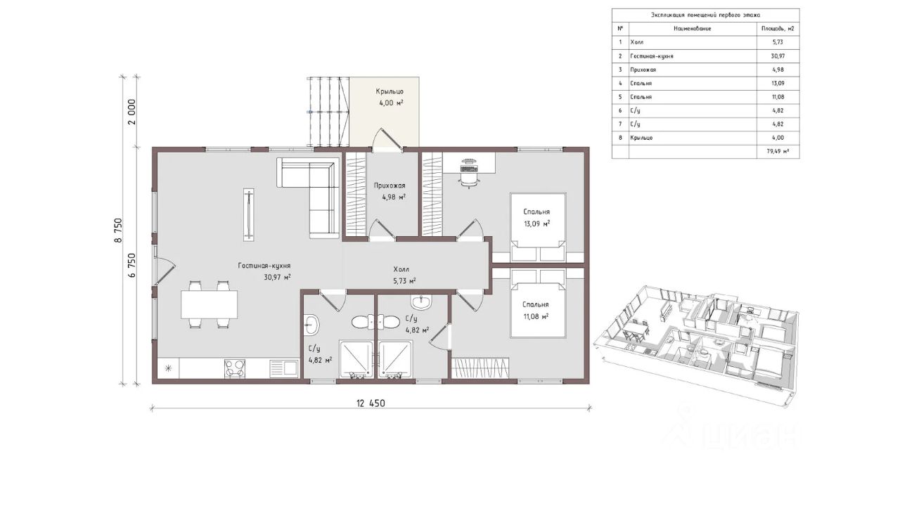 Предлагается полностью подготовленный участок с подрядом под зимний уютный дом с чистовой отделкой площадью 75 кв.м. — идеально для постоянного проживания и семейного уюта.