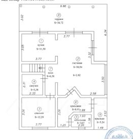 1 этаж: прихожая, большая кухня-гостиная с большим количеством окон, ванная, котельная, кабинет, просторная солнечная терраса