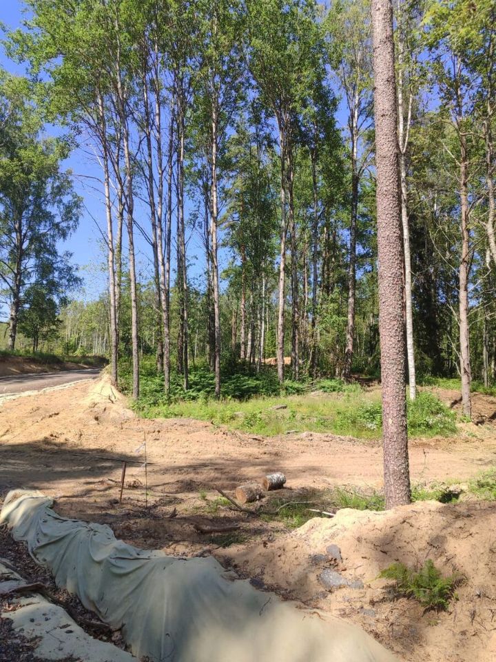 Асфальтовая дорога прямо до участка. Охраняемая территория. Газ по границе поселка. Электричество 15 кВт. В поселке строит дома компания Wi-KiNG (Викинг).