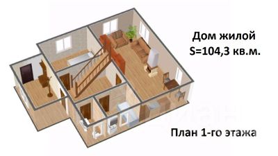 - Первый этаж: кухня-гостиная, комната, холл, санузел.