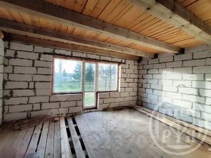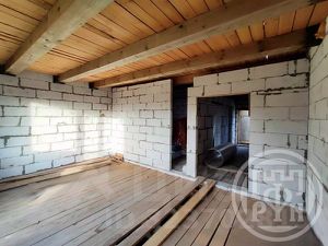 Дом выполнен из газобетонных блоков. Фундамент ленточный:метр высота и метр ширина. Дом планировался для проживания двух семей. Внутренняя отделка завершена на одной половине дома. Вторая часть-холодный контур.