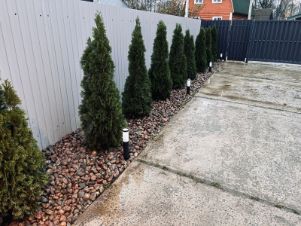 • Забор из двустороннего штакетника на железобетонном фундаменте