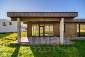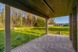 На ровном участке правильной формы площадью 15 соток стоит современный одноэтажный дом площадью 195 кв.м. Участок подготовлен: сделан дренаж, отсыпка, оставлено место для бани, гостевого дома или навеса для машин.