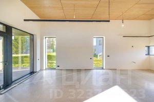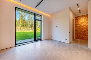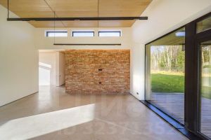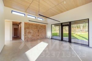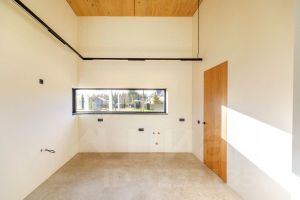 Внутри дом делится на два блока: в спальной зоне две изолированные комнаты, просторная ванна, мастер-спальня с санузлом и нишей под гардероб. В кухне-гостиной потолки достигают 4 метров, через портальную дверь из гостинной можно выйти на просторную террасу.