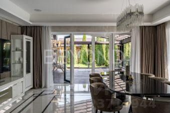 Предлагается к покупке трехэтажный дом 594,7 кв. м, с террасой 40 кв. м с панорамным остеклением, гаражом на три а/м и банным комплексом. Элегантный объект со стилистикой Ар-деко: много блеска, полутона природных красок, четкая геометрия каждого помещения. Баланс между металлом, деревом, камнем и стеклом. Место, где много света и воздуха.