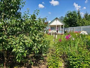 Участок сухой, удобной прямоугольной формы. Полностью подготовлен к стройке: выровнен, сделан фундамент 10х10м из бетонных свай, установлен новый забор. Поставлен новый каркасный теплый домик, полностью пригодный для проживания, с мебелью и душевой. Есть теплица 8х3м, высажен молодой сад - сортовые яблони, груши, вишни, сливы, черешня, много цветов.