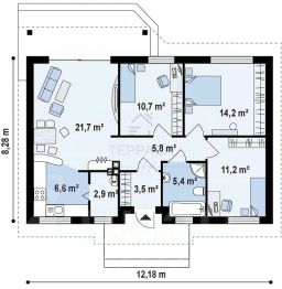 1 этаж - просторная кухня-гостиная с выходом на террасу, 3 изолированные комнаты, прихожая, с/у.