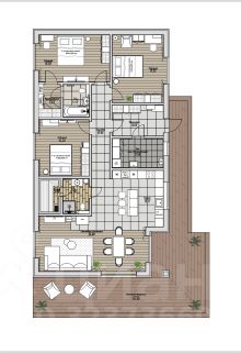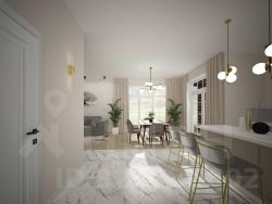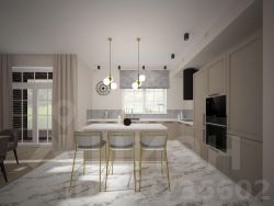 кухня-гостиная (42 кв м) с камином и выходом на террасу;