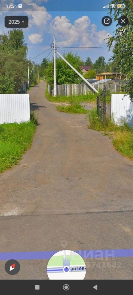 Участок третий от Вознесенского шоссе, ровный, на участке маленький домик. На территории снт некоторые соседи проживают круглый год.