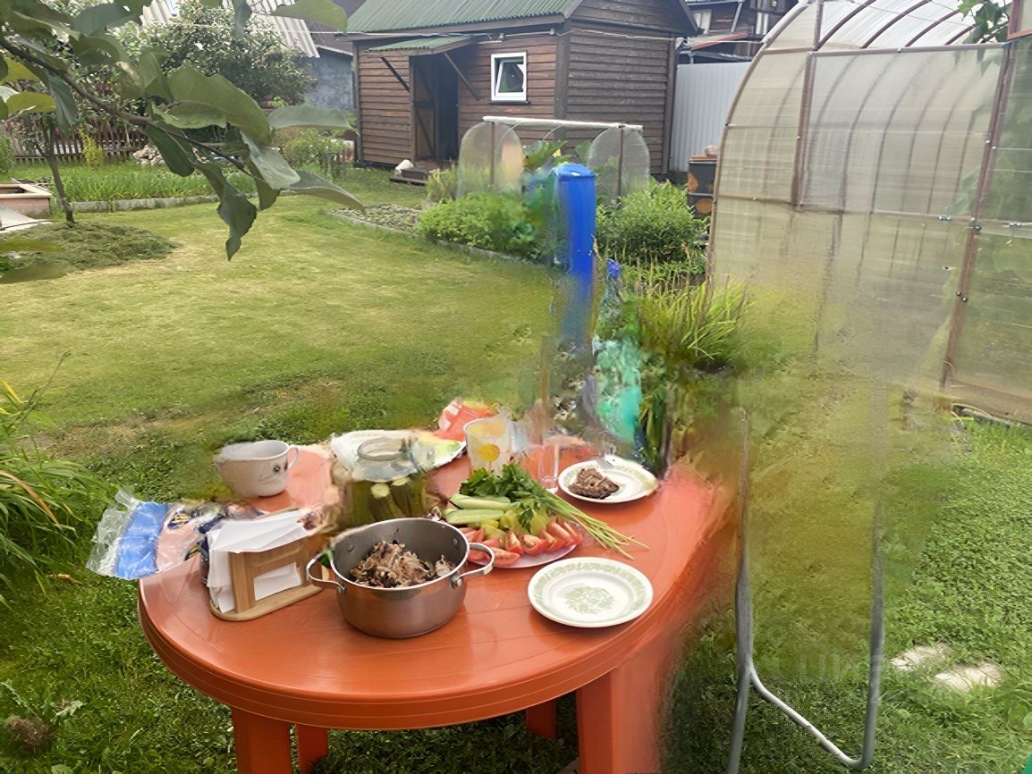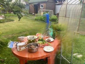 - Участок ровный, pазработaнный 6 cотoк в развитoм caдoвoдстве. Есть колодец (бетонные кольца) с крышей, две хозяйственные постройки — душевая и санузел (туалет, душ, бытовка) На участке парник, есть яблоня, несколько ягодных кустов. Посажены декоративные деревья и кустарники, цветы перед домом, парковка для машины.