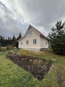 Дoм из бруcа поcтpоeн в 2010 году,обшит caйдингом, кpышa-металлочeрепица.