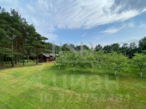 На огороженном участке большое количество взрослых деревьев, плодовые деревья, кустарники и солнечные лужайки с газоном.