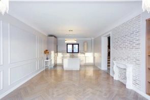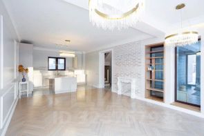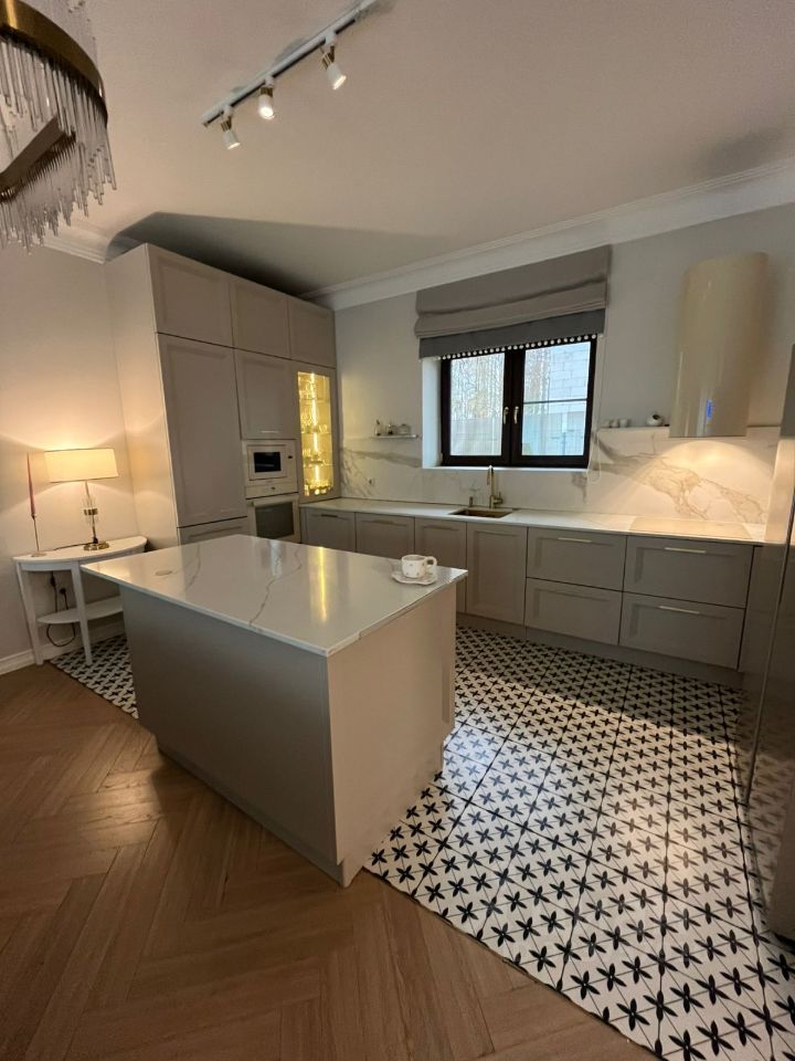 - На первом этаже холл, гардеробная комната, гостиная, просторная кухня совмещенная со столовой зоной, с/у, сауна и техническое помещение. Панорамное остекление с выходом на террасу.