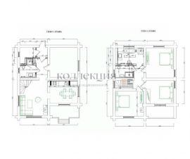 На первом этаже расположены: просторная гостиная с дровяной печью, кухня-столовая с выходом на террасу, гостевая спальня, ванная комната, холл, бытовое помещение.