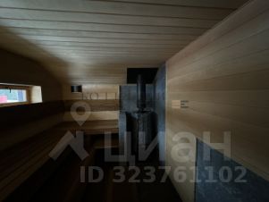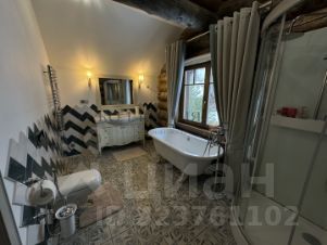 Рядом с домом построена бревенчатая баня. Это полностью оборудованный и меблированный домик, с небольшим холлом, просторной парной, ванной комнатой и столовой. Сам дом и баню соединяет широкая мощеная дорожка со ступенями.